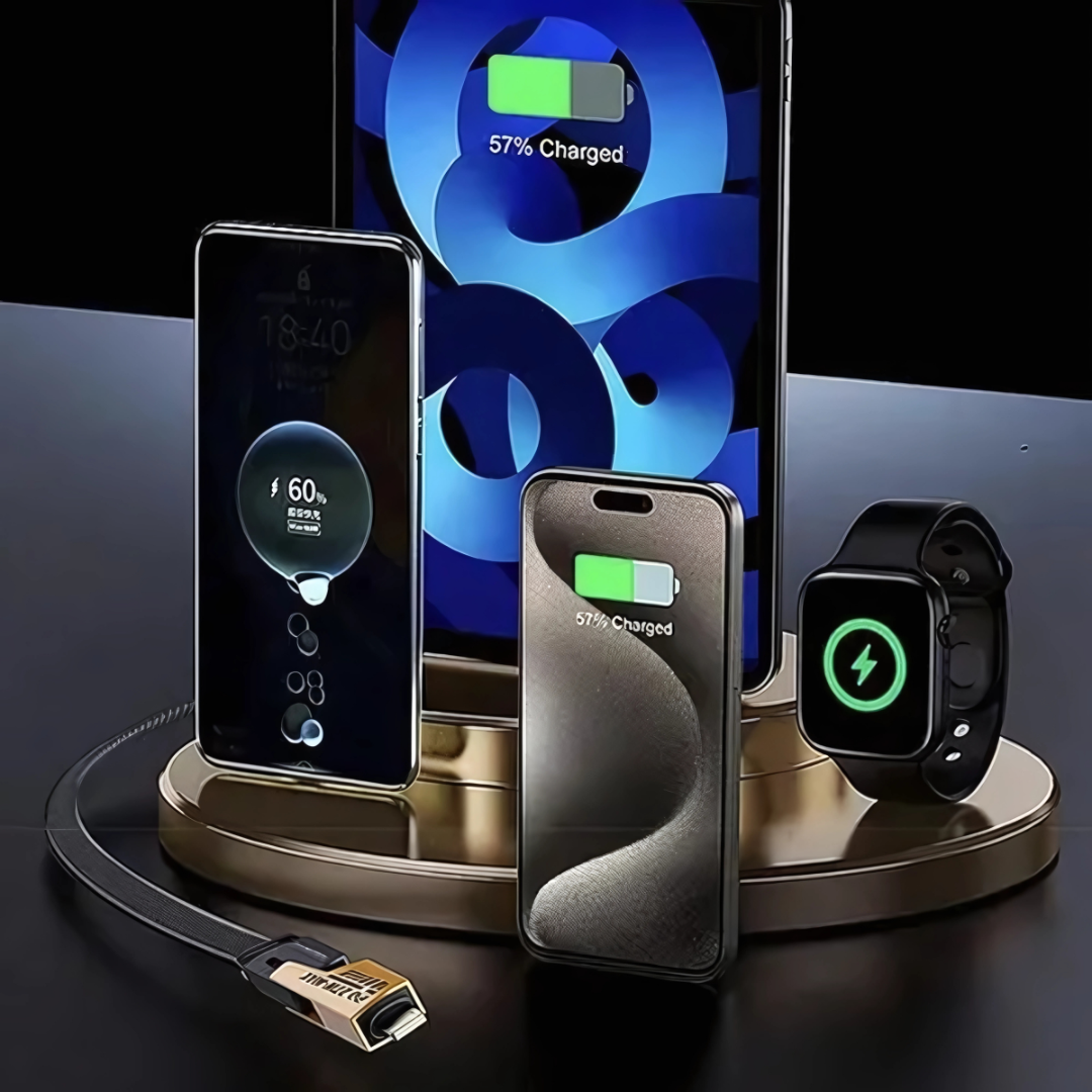 Diseño 4 en 1 – Incluye conectores USB-C a USB-C, USB-C a Lightning, USB-A a USB-C y USB-A a Lightning, brindando una compatibilidad excepcional.