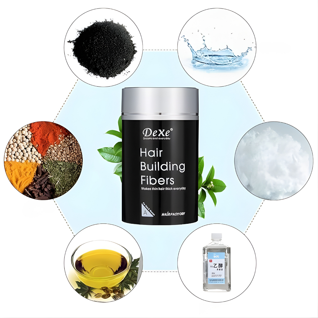 - Fibras de queratina natural: se mezclan perfectamente con el cabello.